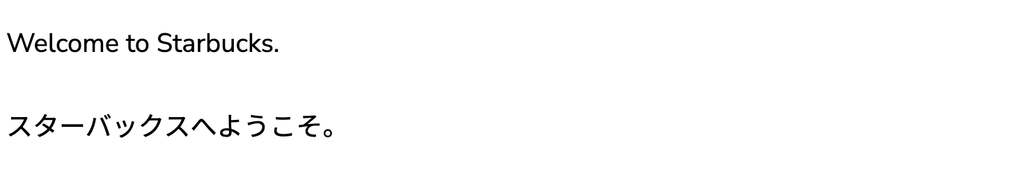 <p lang="ja"><span lang="en">Starbucks</span>へようこそ。</p>